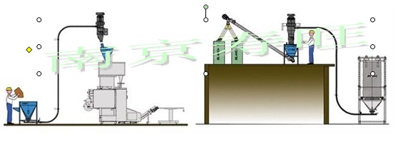 負(fù)壓輸送氣力輸送系統(tǒng)一般用羅茨真空泵或真空發(fā)生器為動(dòng)力源,抽吸系統(tǒng)內(nèi)的空氣,輸送管內(nèi)形成低于大氣壓的負(fù)壓,進(jìn)風(fēng)口形成物料與氣體的兩相流,進(jìn)入管道,在一定的流速下,吸送到終點(diǎn)的料氣分離設(shè)備,物料在重力或離心力的作用下分離出來進(jìn)入料倉,氣體經(jīng)羅茨真空泵或離心機(jī)排入大氣。